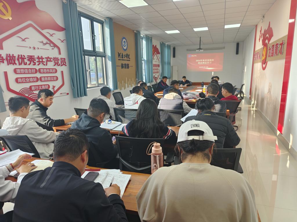 10月24日下午,体育部组织全体教职工在体育部会议室召开政治理论学习会议,学习领会习近平总书记关于教育工作的重要指示批示精神,进一步提升政治理论素养。体育部全体教职工参加了会议。会议由党总支书记靳守国主持。
