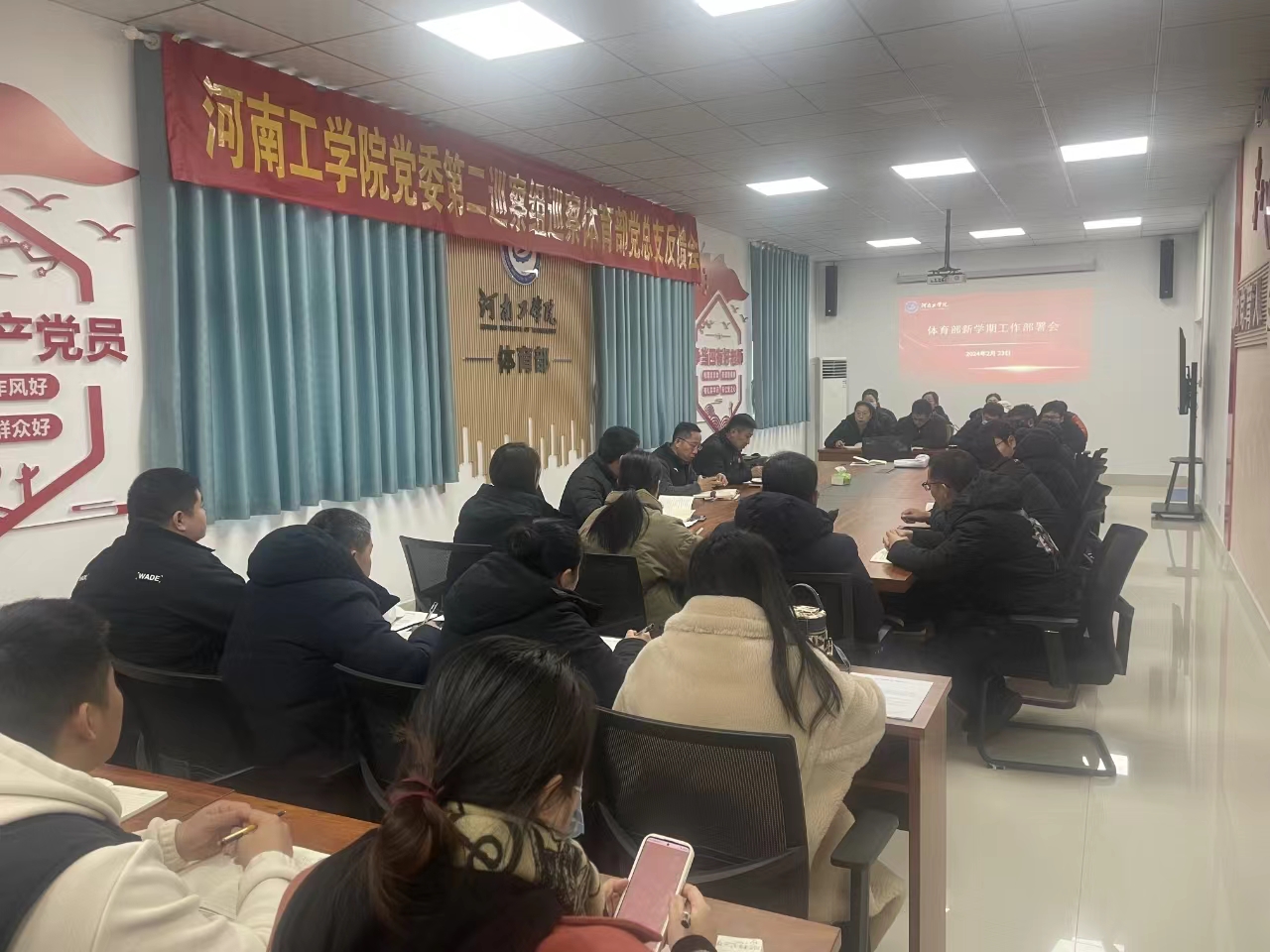 为切实做好开学前准备工作,确保新学期部门各项工作的顺利开展,2月23日下午,体育部召开新学期工作部署会议。体育部党政班子、体育部全体教职工参加会议。会议由体育部主任彭昆主持。