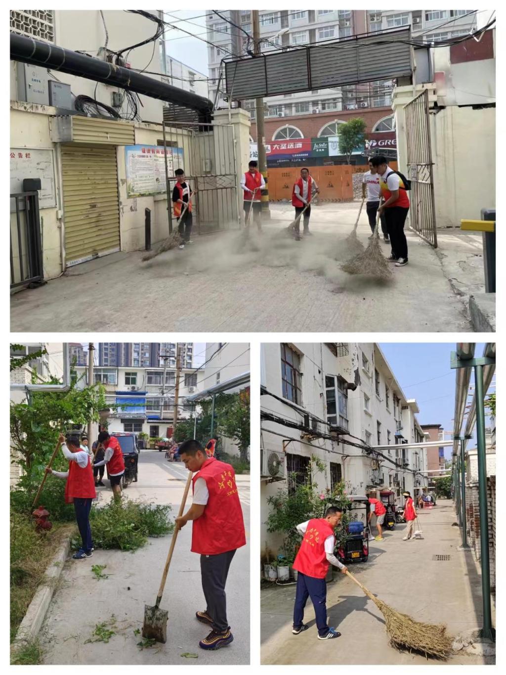 8月11日上午,体育部全体教师来到中原路统建楼家属院开展志愿服务活动,进行打扫环境卫生、清理杂物,规范车辆摆放等活动,以实际行动助力文明城市创建取得新成果。