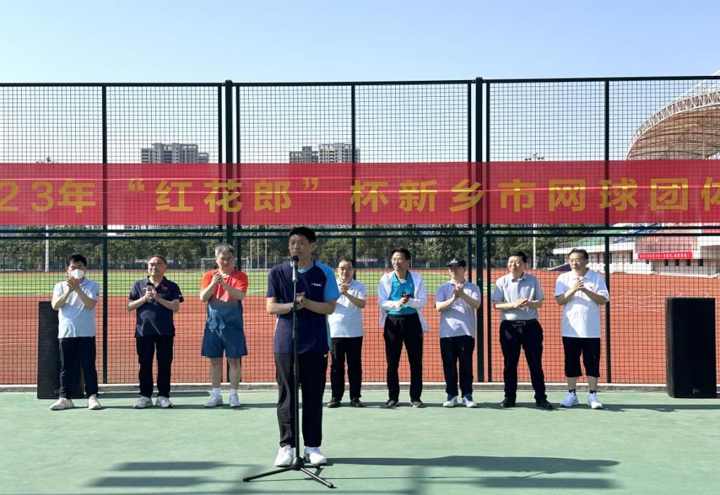 许毅明致开幕辞。他指出,在全国上下深入贯彻落实习近平总书记关于“建设体育强国”重要论述之际,我们相聚在美丽的河南工学院,举办2023年新乡市网球团体赛,本项赛事是我市网球爱好者积极践行全民健身国家战略,推广、普及网球运动的一项传统赛事,更是大家增进友谊、促进交流的重要平台,希望全体运动员充分利用好这个平台和机会,体验网球运动魅力,共同推动我市网球运动蓬勃发展。