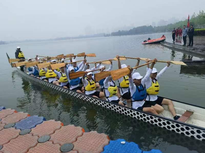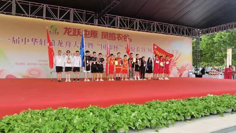 在接到大赛邀请后,我校迅速招募,层层筛选,组建了首支河南工学院龙舟队,开始了为期15天的集训。教练员张增宾,带领20名队员团结一心,克服时间紧、任务重、零基础,天气热等因素,利用周末休息时间,去距离学校40公里外的平原新区凤湖刻苦训练。经历了队员发烧、受伤,也经历了烈日当头、倾盆大雨,但队员们始终相互鼓励,士气高昂,从未放弃。赛场之外,我校代表队成员纪律严明,热忱好学,积极同各队开展各种形式的交流,展现了我校学子优良风貌,树立了我校良好形象。经过两天紧张激烈的比赛,我校代表队获得本次比赛总成绩第五名的优异成绩!