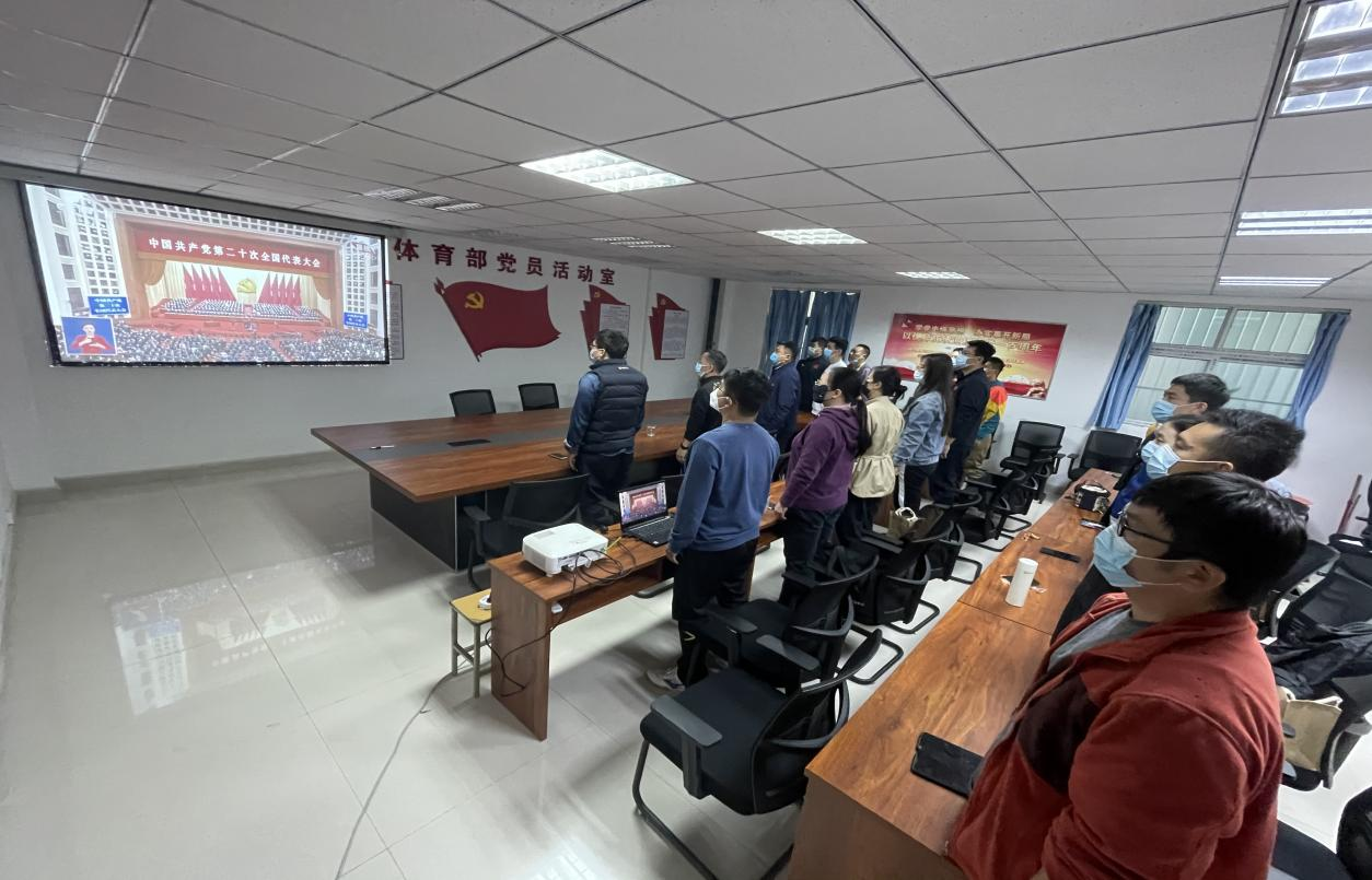 10月16号上午10时,举世瞩目的中国共产党第二十次全国代表大会在北京人民大会堂隆重召开,体育部全体教职工在体育部会议室集中收看大会开幕会盛况,认真聆听了习近平总书记所作的题为《高举中国特色社会主义伟大旗帜 为全面建设社会主义现代化国家而团结奋斗》的报告。