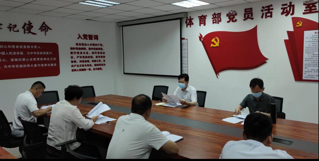 2022年5月25日上午8:30,在科苑313体育部会议室召开2022年度体育部领导班子以案促改专题民主生活会,校督导组成员樊羁光、侯存敏,体育部领导班子成员张松青,体育部党总支委员卫超、林新利、王党生参加会议。