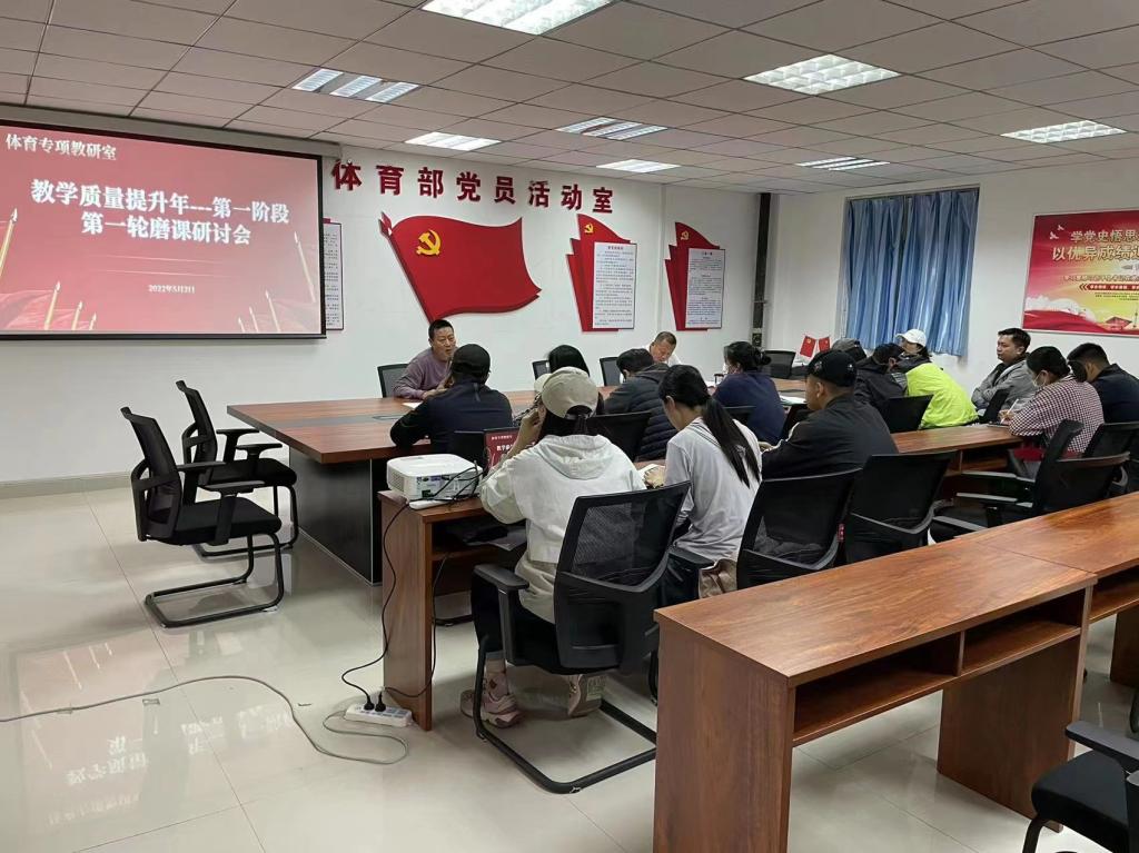 为切实提高我校体育课课堂教学质量,于2022年5月2日上午,在科苑313召开教学质量提升年---第一阶段第一轮磨课研讨会,全体主讲教师参加了会议,会议由体育专项教研室主任岳绍军老师主持。