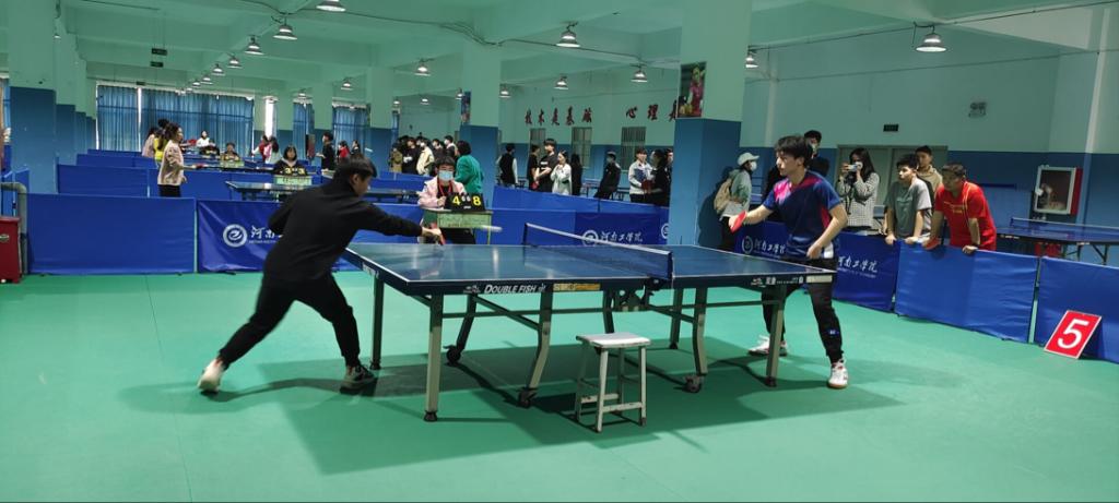 2022年3月24日,3月31日河南工学院2022年“河工杯”全运会乒乓球赛在科苑乒乓球馆隆重举行,来自全校各学院的乒乓球爱好者参加了本次比赛。比赛分为为混合团体赛、男子单打、女子单打。本次比赛,同学们赛出了风格,赛出了友谊,体现出了我校学生顽强拼搏,永争第一的精神。本次比赛丰富了学生们的业余文化生活,为同学们搭建了可以施展自身球技的舞台。比赛规则采用国际乒联最新比赛规则。