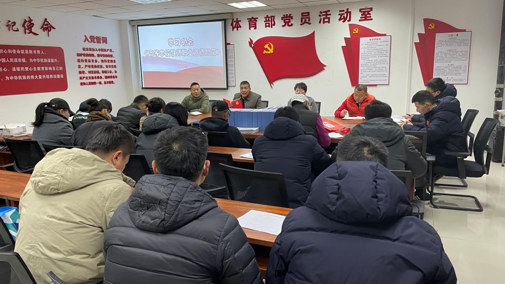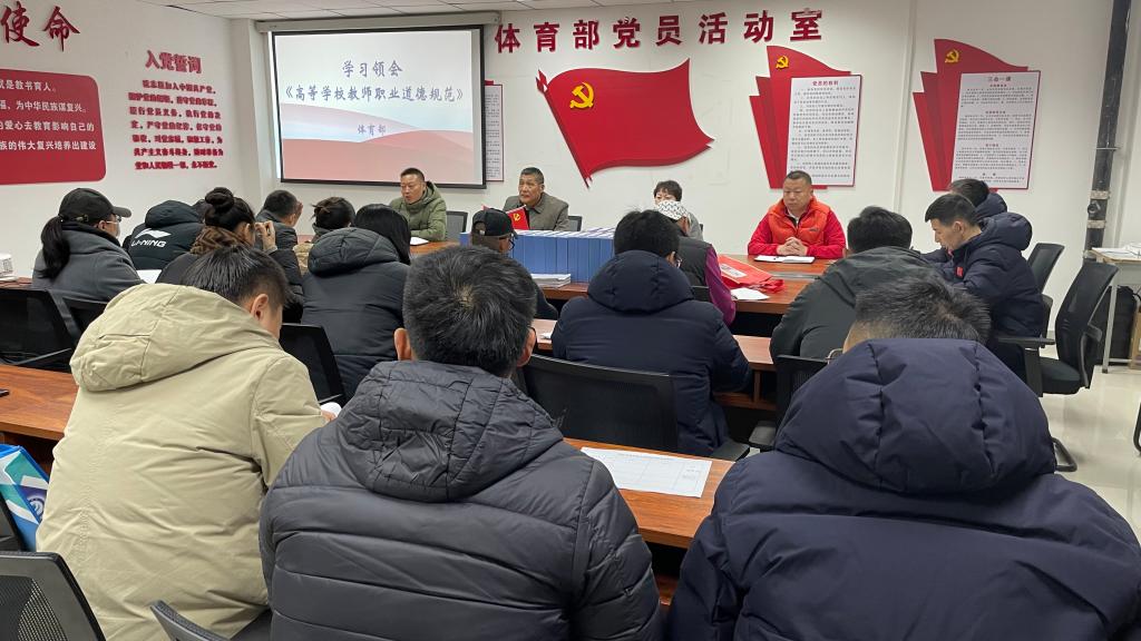 会上,陈超主任传达《教育部关于在教育系统开展师德专题教育的通知》精神,领读《新时代高校教师职业行为十项准则》、《高等学校教师职业道德规范》,要求体育部全体教师,提高自身职业道德修养,高标准严格要求自己,自觉维护教师职业形象,提振师道尊严。