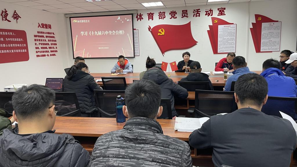 11月25日,体育部党总支组织全体教师政治理论学习,深入学习宣传贯彻党的十九届六中全会精神。全会最重要的成果是审议通过了《中共中央关于党的百年奋斗重大成就和历史经验的决议》。