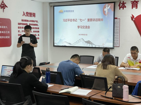 9.23日,体育部党总支学习贯彻习近平总书记“七一”重要讲话精神交流会在体育部党建活动室召开。体育部全体教师参加,会上体育部党总支书记张松青强调学习贯彻好“七一”重要讲话精神是当前一项重大政治任务,也是党史学习教育的重要内容,体育部要按照学校部署,以先学一步、学深一层的实际行动,引领带动全体教师迅速掀起学习贯彻的热潮,围绕“学习‘七一’重要讲话精神,奋进新征程、建功新时代”开展专题交流,持续深入学习讲话精神的核心要义,切实把思想和行动统一到讲话精神上来,以更加奋发有为的作风和干劲推进各项工作。