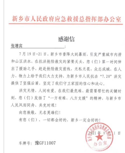 张增宾,2021年体育部新进教师,退役军人,在新乡市连续暴雨后,牧野湖水位急聚升高,与同学一行8人,带着一辆铲车,自发组成救援小队,前往牧野湖抗洪救灾,一连几天奋战在抗洪救灾一线,运送抗洪沙袋、救灾官兵、发烧的孩子和受困的路人。接到体育部通知,张增宾迅速赶到学校,投入安置受灾群众工作一线,不分昼夜,卸运物资,服务受灾群众。