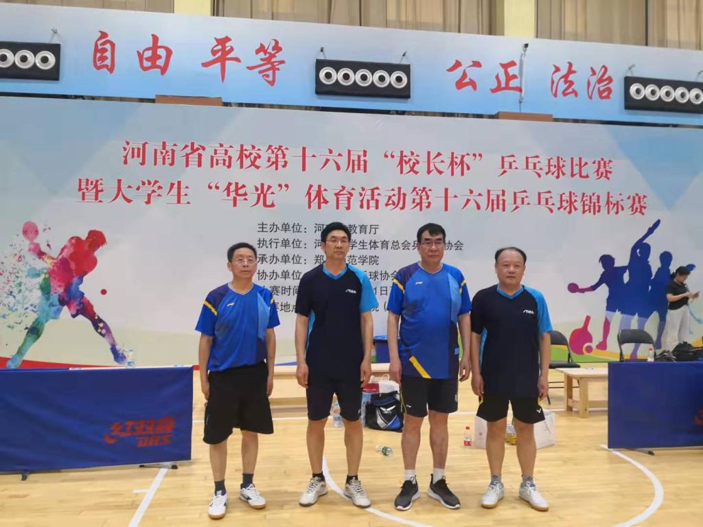 在第十五届河南省校长杯比赛中,我校获得团体第八名的好成绩;在第十六届河南省校长杯比赛中,我校获得团体第五名的好成绩。其中张国臣副校长作为河南省代表队成员,连续参加了多届全国校长杯乒乓球比赛,在今年刚刚结束的全国校长杯乒乓球比赛,获得团体第四名的好成绩。