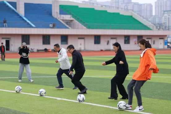 随着哨声响起,比赛正式开始。校友队队员虽已毕业多年,却依旧保持着对足球的热爱与默契;教职工队则凭借稳定的发挥与团队协作,展现出昂扬的精神风貌。场上球员奋力拼搏,场下观众掌声、欢呼声不断,校友与师生的互动交融,让校庆的归属感与凝聚力在赛场间传递。