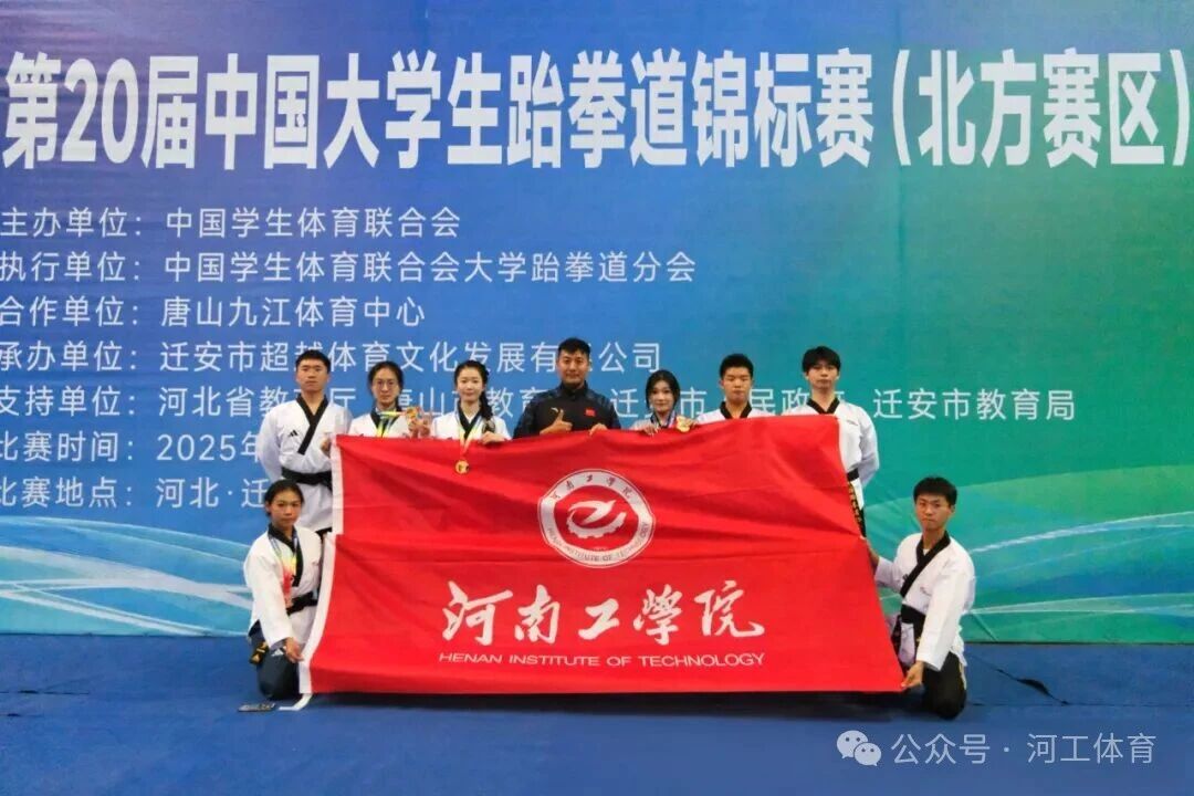 近日,第二十届中国大学生跆拳道锦标赛(北方赛区)在河北迁安市九江体育中心落下帷幕。这场由中国学生体育联合会主办的高水平赛事,汇聚了全国 169 所高校的 1700 余名运动员同台竞技。我校派出了以体育部主任彭昆为领队,教师董珂为教练员,男女学生共8名队员组成的代表队参加本次比赛。经过6天的奋力拼搏,我校跆拳道队凭借过硬实力与顽强拼搏,斩获 6 项荣誉,且全员晋级全国总决赛,为建校五十周年送上一份特殊的贺礼。