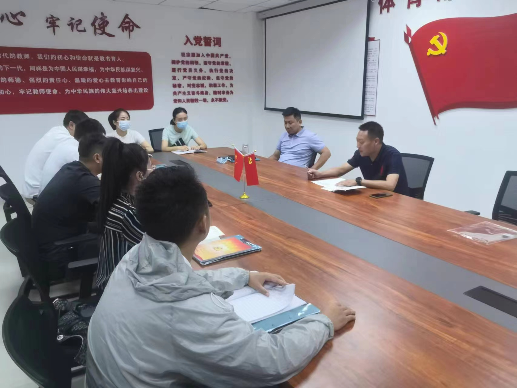 2022年9月15日下午,体育专项党支部在科苑313会议室召开会议,开展政治理论学习。会议由支部书记岳绍军主持,全体党员参加学习。