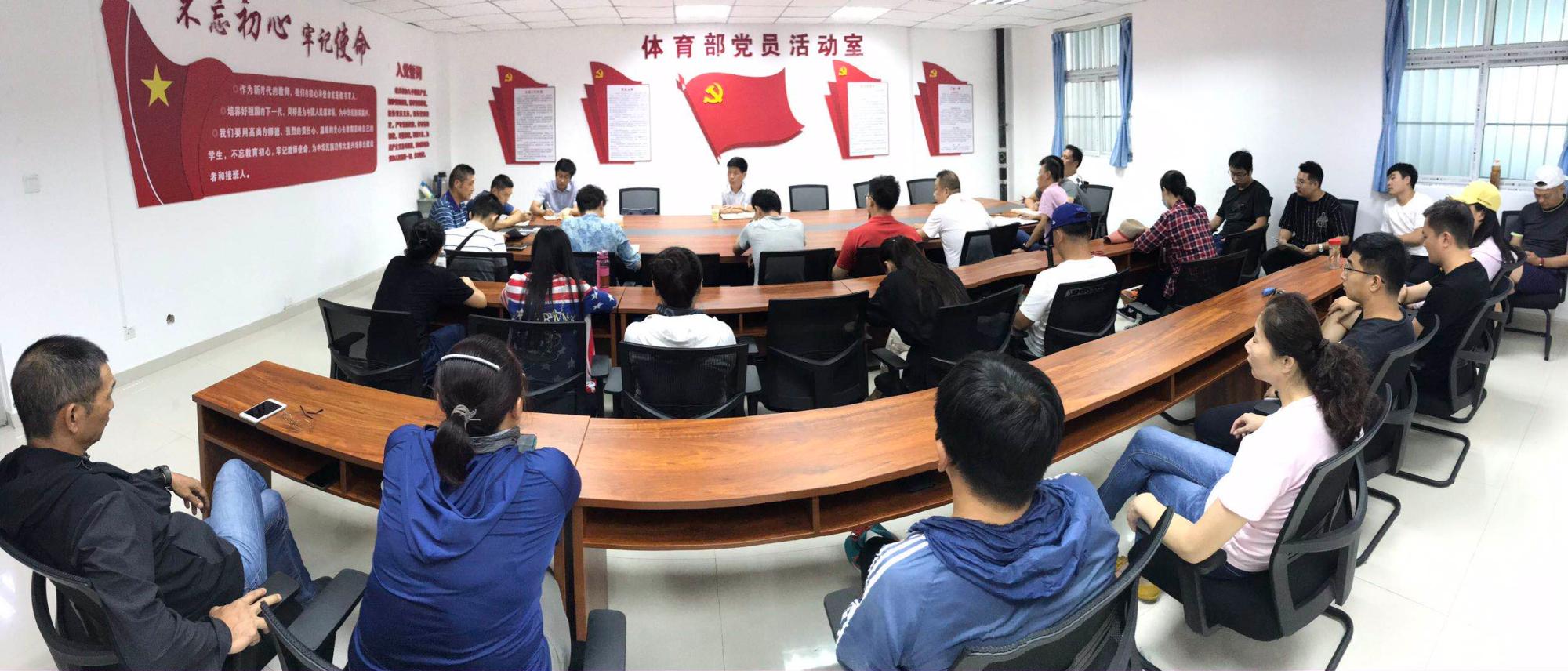 2020年9月15日下午三点,陈丙义校长在校长办公室主任孙文琦陪同下,参加了体育部座谈会,就体育部课程建设、体育教学情况进行座谈,座谈会由体育部主任陈超教授主持,体育部全体成员参加了会议。体育部党总支书记张松青同志代表体育部对陈丙义校长的到来表示欢迎。