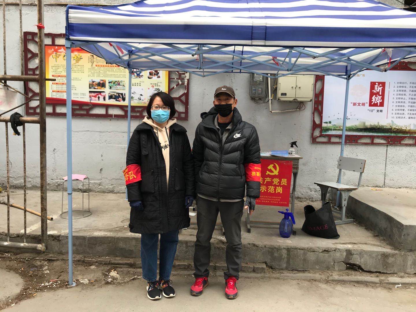 2020年2月27日与3月16日,我部张松青,陈超等10名党员志愿者,每两人一组先后来到对口帮扶的中原路统建楼家属院党员先锋岗执勤点,坚守在防疫岗位上。他们认真查看每一名进出小区人员的健康通行卡,测量体温,对往来车辆进行病毒消杀和登记,宣讲疫情防控知识,提醒大家加强自我防护,遵照政府及相关部门的规定行事,保护好自己,保护好家人。