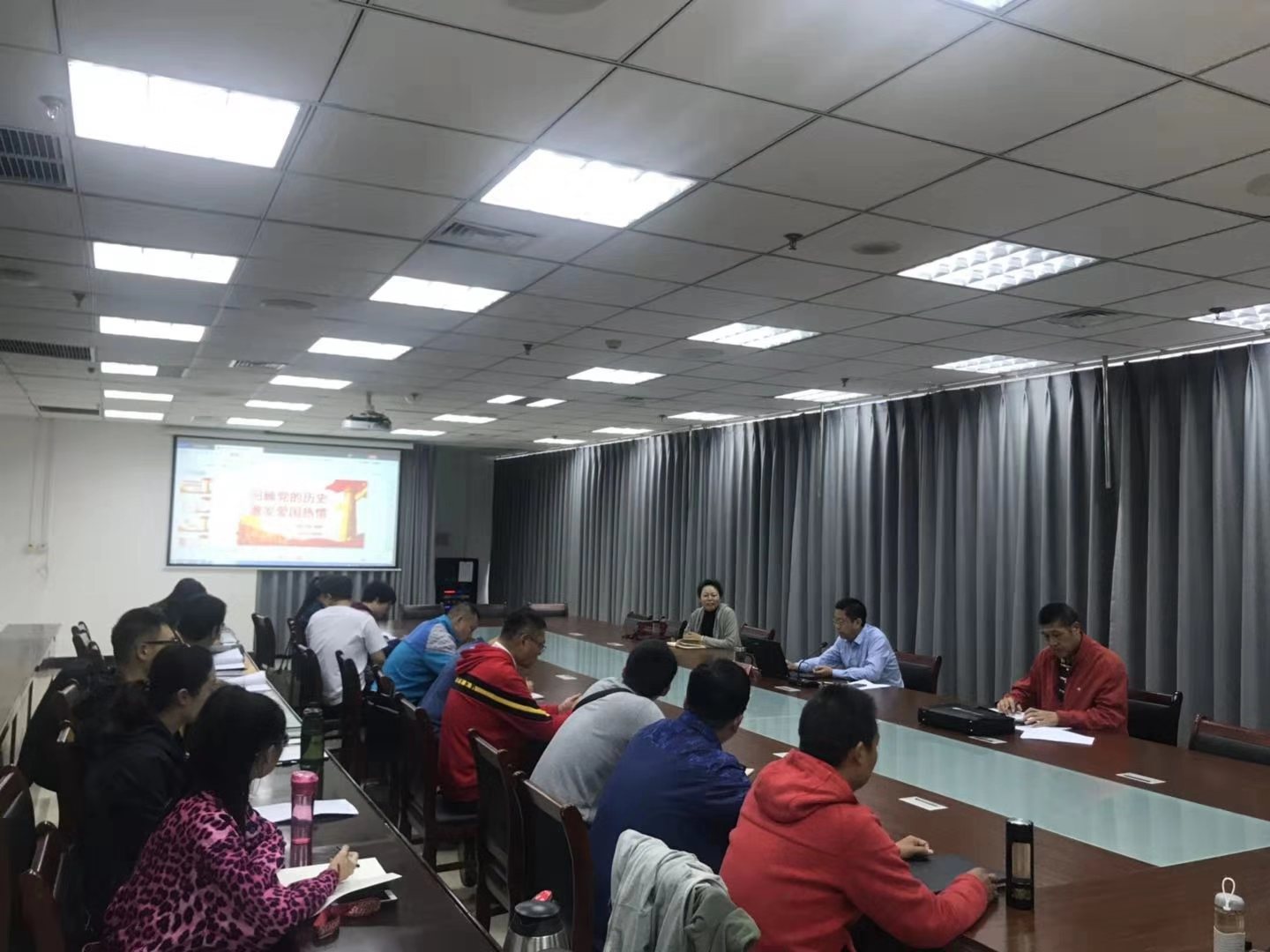 张校长分别从中国共产党成立的背景、实现伟大历史转折和新时期党的奋斗目标等10个阶段进行了详细解读。中华人民共和国从站起来、富起来到强起来,历经艰辛,今天的美好生活是无数革命先烈用鲜血和生命换来的,中国共产党“不忘初心、牢记使命”,勇于担当,不懈奋斗的崇高品格都是我们的宝贵财富。今年是中华人民共和国成立70周年,站在历史新起点,让我们重温历史,铭记历史,更加爱国、爱校,以“不忘初心、牢记使命”主题教育为契机,增强“四个意识”、坚定“四个自信”,以党的建设高质量推动事业发展高质量,充分发挥体育强校职能,为师生服务好,助推学校各项事业更好更快发展,为培养德智体美劳全面发展的社会主义事业合格建设者和可靠接班人而努力奋斗。