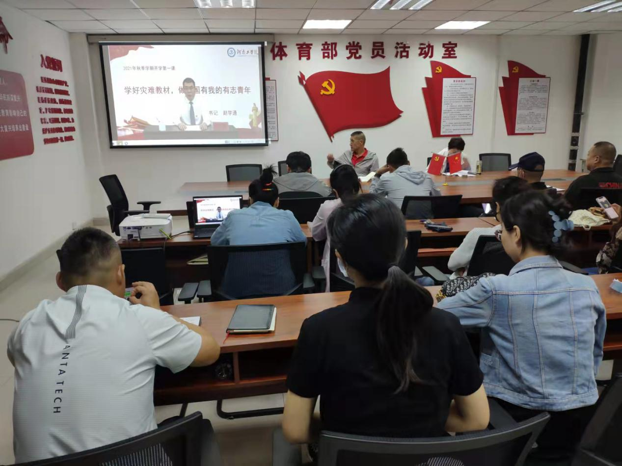 9月6日上午,我校精心筹备的2021年秋季“开学第一课”在线上正式开讲。体育部组织全体教师在科苑313会议室集中学习。