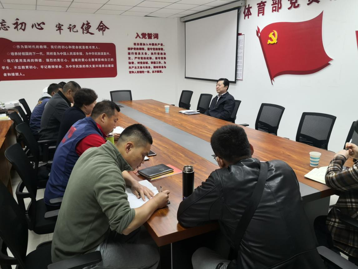 樊羁光书记听取了两位领导以及部分科级干部的汇报与发言,对体育部的近年来取得的成绩表示肯定,对于某些方面的不足,也明确指出,并积极谋划,帮助解决。他强调,按照学校本科教学水平评估的要求,体育部应该将近三年的各项计划列成清单,并且上墙,各项体育工作的开展要以本科教学水平评估标准为依据。同时,他强调全体教师应把握时代脉搏,认真学习习近平总书记关于党史学习教育动员大会的讲话精神,在全党开展党史学习教育,是党中央立足党的百年历史新起点、统筹中华民族伟大复兴战略全局和世界百年未有之大变局、为动员全党全国满怀信心投身全面建设社会主义现代化国家而作出的重大决策。全体教师要做到学史明理、学史增信、学史崇德、学史力行,学党史、悟思想、办实事、开新局,以昂扬姿态奋力开启全面建设社会主义现代化国家新征程,以优异成绩迎接建党一百周年。
