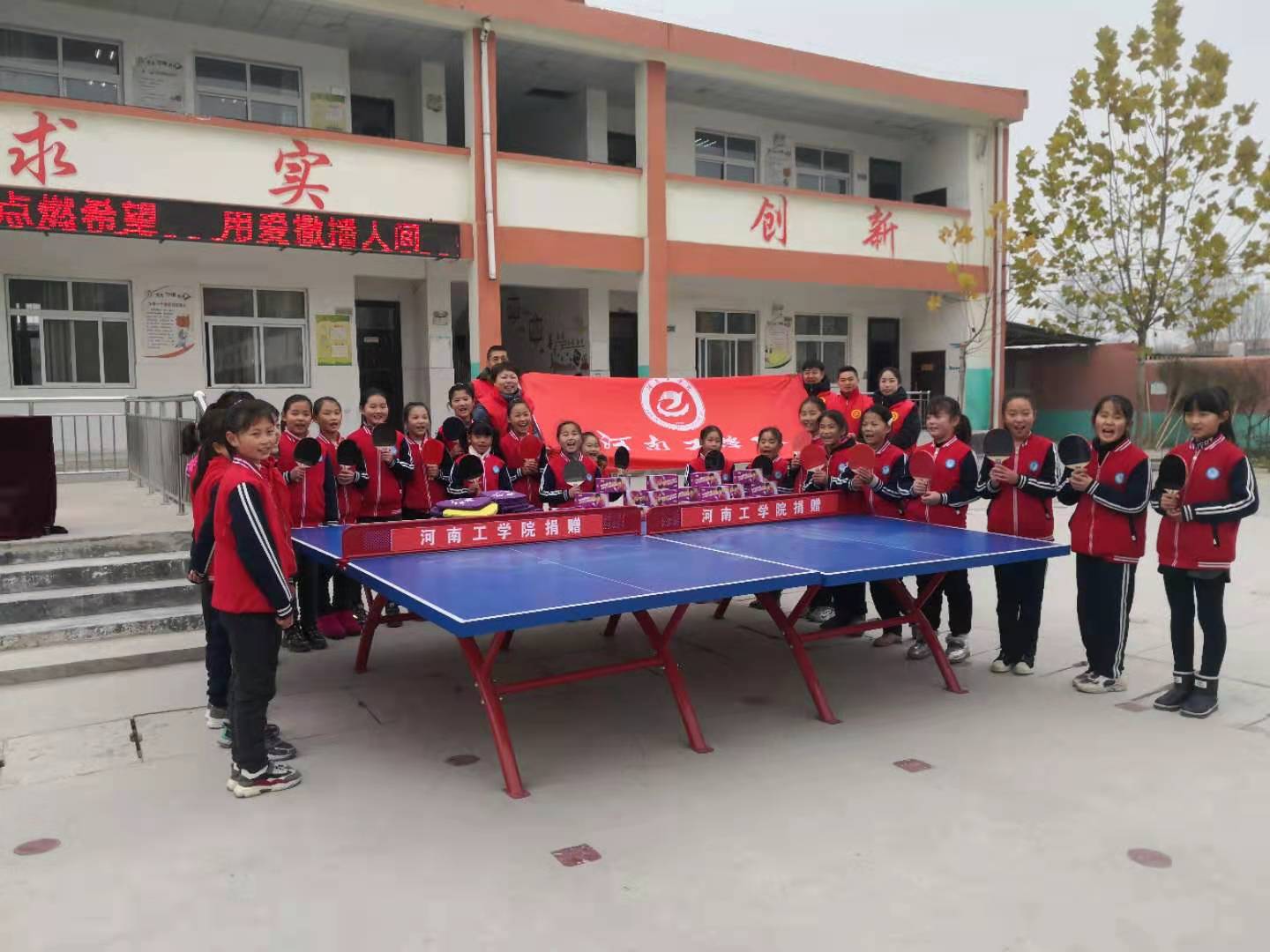 由于陈固镇中心小学缺乏体育师资力量和相关体育教学器材设施,尤其是各种球类等专业老师欠缺,导致很多体育活动项目无法开展。因此,针对这一情况,河南工学院体育部受学校委派,以体育部党总支书记张松青和体育部主任陈超为队长,组成“快乐成长”志愿服务队,通过与教师座谈培训等方式,提升农村教师的体育专业能力和指导水平;通过一堂有意义的乒乓球体育课,让学生感受到了不一样运动快乐。活动中还向陈固镇中心小学捐赠了室外乒乓球台、乒乓球拍等体育器材。