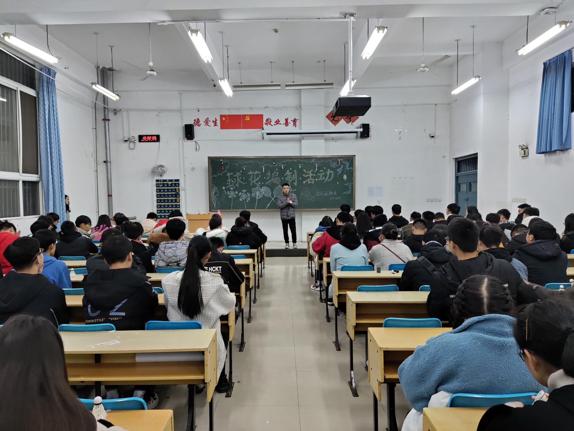 我校羽毛球协会于11月30日晚七点在我校公教楼c107举行了球花编制培训活动。本次培训期间,各位羽协会员激情高涨、勤学善思,表现出了我校学生积极向上的优秀精神风貌。此次培训的教授人员也是十分的尽职尽责,他们穿梭于广大学员之间传授编制技巧,帮助解决学员们在编制过程中遇到的各种问题。他们耐心细致的教导、善解人意的微笑也让学员们感到如家般的温暖,完美的诠释了我校干部认真负责的工作态度。