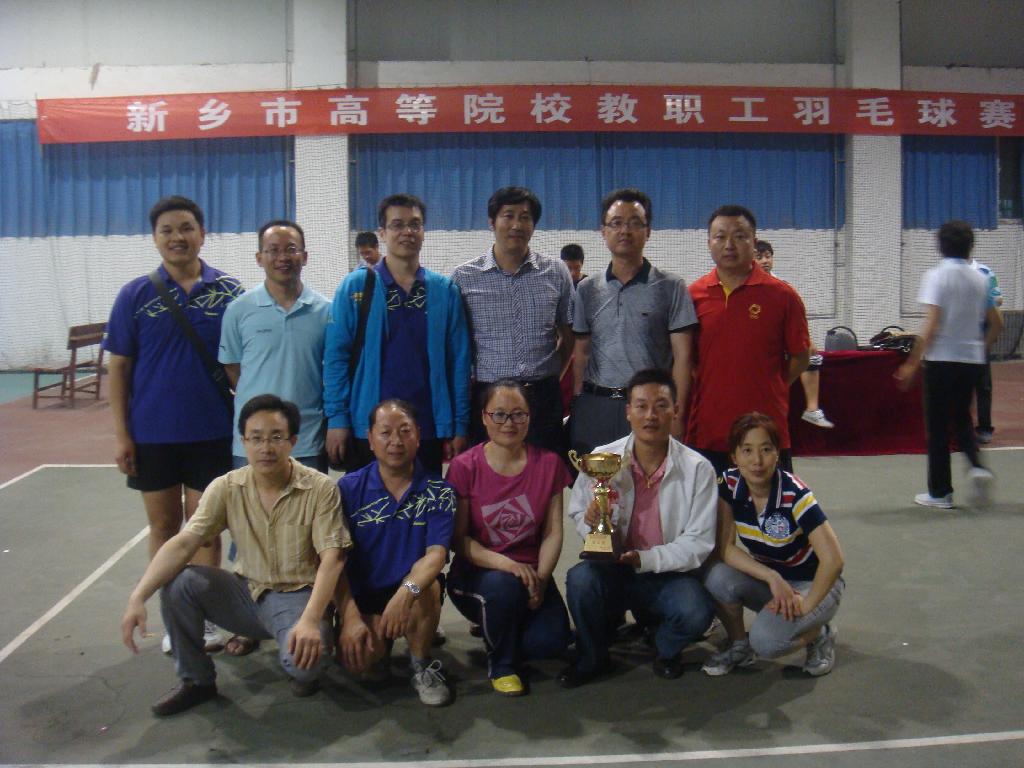 5月25日,新乡市“高校杯”羽毛球团体赛在新乡市职业技术学院球类馆成功举行。经过一天激烈而紧张的比赛,以我校副校长李贵敏、副校长贾积身为团长,基础部主任陈超为领队,计科系主任徐立新为教练,任泰安、孙文琦、李坤、林新利、岳绍军等十名队员组成的校教工羽毛球代表队,充分发扬机专人团结协作、顽强拼搏的进取精神,最终荣获新乡市“高校杯”羽毛球团体赛亚军。