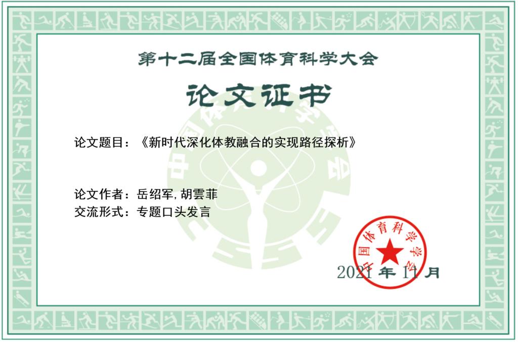 2021年11月,岳绍军老师参加了在山东日照举办的第十二届全国体育科学大会,题目为:《新时代深化体教融合的实现路径探析》。会议内容如下: