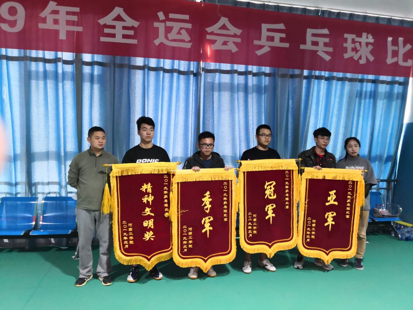 2019年3月30日,河南工学院2019年度乒乓球锦标赛在静苑球类馆隆重举行,来自全校各系近百位乒乓球爱好者参加了本次比赛。比赛分为混合团体赛、男子单打和女子单打三个项目。 本次比赛代表了我校乒乓球最高水平,同学们赛出了风格,赛出了友谊,体现出了我校学生顽强拼搏,永争第一的精神,体现出了友谊第一比赛第二的高尚体育风范。比赛规则采用国际乒联最新比赛规则。