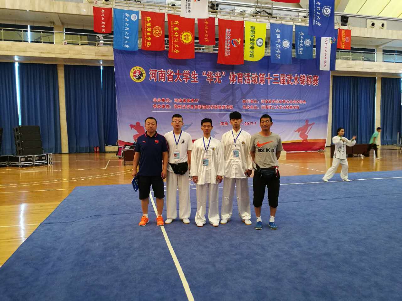 7月2日至6日,河南省大学生“华光”体育活动第十三届武术锦标赛在郑州大学西亚斯国际学院隆重举行,来自省内47所高校的569名运动员参加本次比赛。经过5天的激烈角逐,我校荣获本科男子甲组和式太极拳第五名,本科男子甲组和式太极长器械第三名。